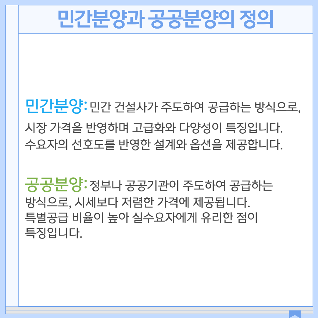 1. 민간분양과 공공분양의 정의