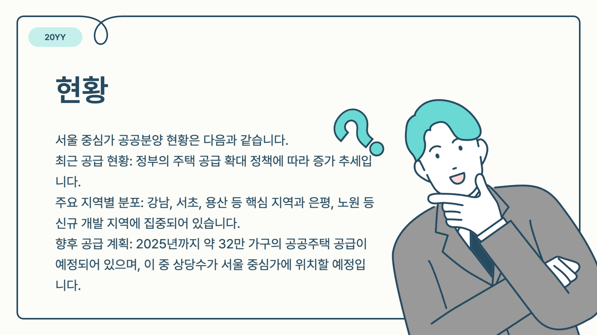 향후 공급 계획: 2025년까지 약 32만 가구의 공공주택 공급이 예정되어 있으며, 이 중 상당수가 서울 중심가에 위치할 예정입니다.